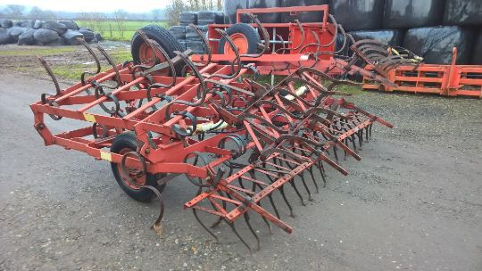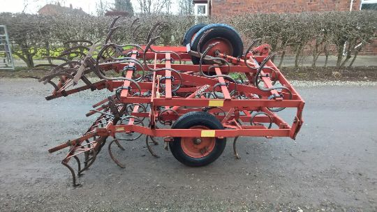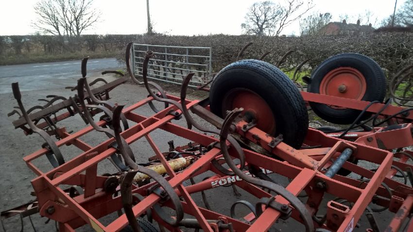 Used Kongsklide 5m HYD fold vibra masta tripple K HYD fold, 4 adjustable wheels, rear following harrow, quick hitch bar. Location: Market Drayton, Staffordshire.