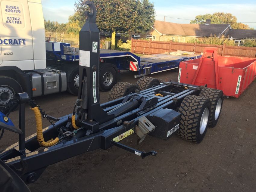 Stronga HookLoada HL120. Hook lift trailer 12t carry capacity, 15t gross trailer weight. Brand new tyres, new lights all round, one owner from new. Comes with 1 x drop side heavy duty bin. Year 2012. Serial Number: HL1542. Location: Sandy, Bedfordshire.
