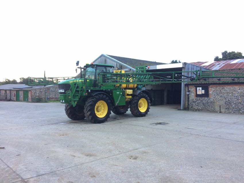 John Deere 5430i Self Propelled Sprayer (2010), 6478hrs, 32/18M Booms, On 620/70 R38 Tyres C/W Sections and Pressure Circulation, STD Drivetrain, 5030i Pack with Autotrac & Key Card, Multi Mode 4WS, Short Stroke Steering, High Flow Solution Spray with Twin Piston, Kamlock Couplings, 3" Fill Hose, Teejet XR-XR-110.04-VP Red. C/W Greenstar Starfire SF1 Dome and Greenstar Autosteer & Auto Nozzle Shut off, C/W additional set of Row Crops on 380/90 R46 Tyres. Location: Swaffham, Norfolk