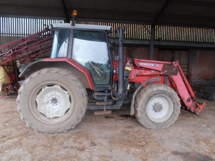 Massey Ferguson 6270 Tractor with Massey Ferguson 895 Loader. Massey Ferguson Power Control 6270 with Massey Ferguson 895 front end loader (euro fit brackets). 8085 hours. Left side mirror cracked. Front tyres: 13/6/28. Rear tyres: 16/9/38. Set of pallet tines included. Year 2002. Serial Number: L340022. Registration Number: AO52 PHV. Location: Acle, Norfolk.