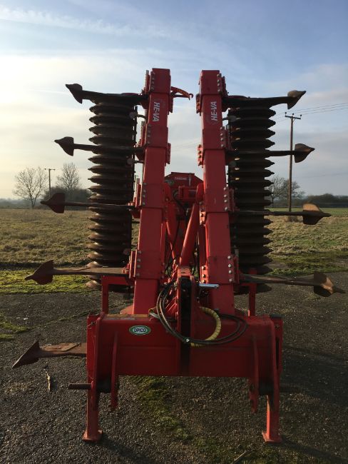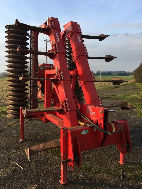 He-Va 9 leg folding subsoiler, (09), Serial No. 26240, With 2009 Opico Air 8 radar metered seeder - Location - Sandy, Bedfordshire