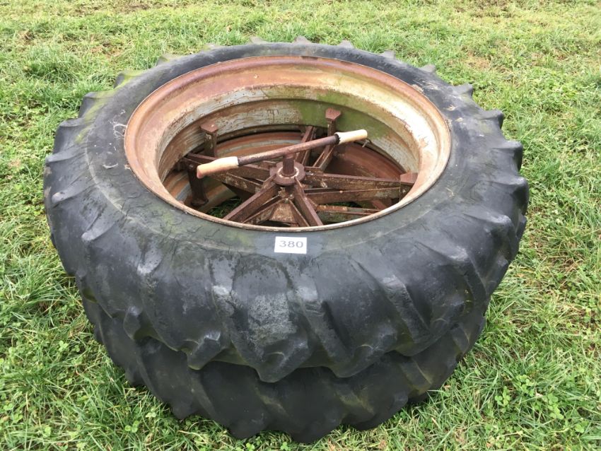 Pair Bettinson 13.6R38 dual wheels and tyres