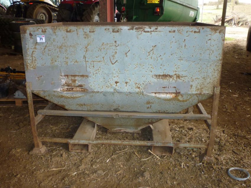 Feed hopper on frame with pallet tine sleeves