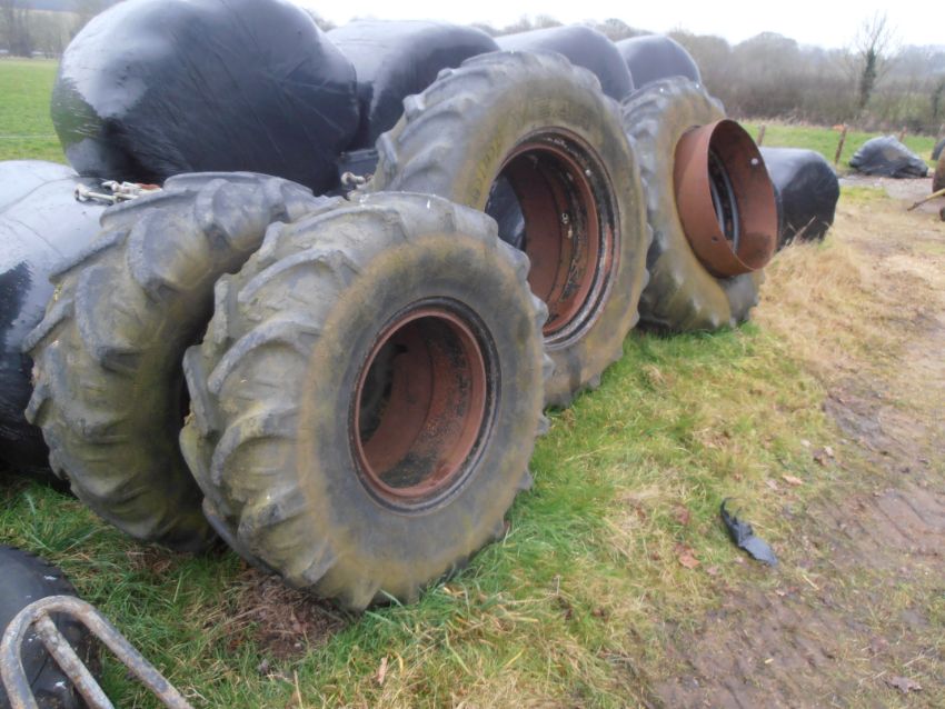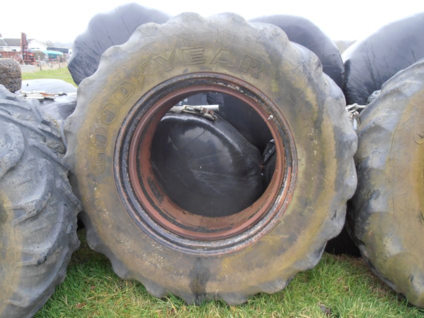 Stocks Dual Wheels Set of 4 with clamps, Rear Goodyear - 18.4 R38, Front Kleber: 16.9 R24