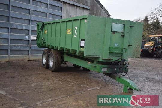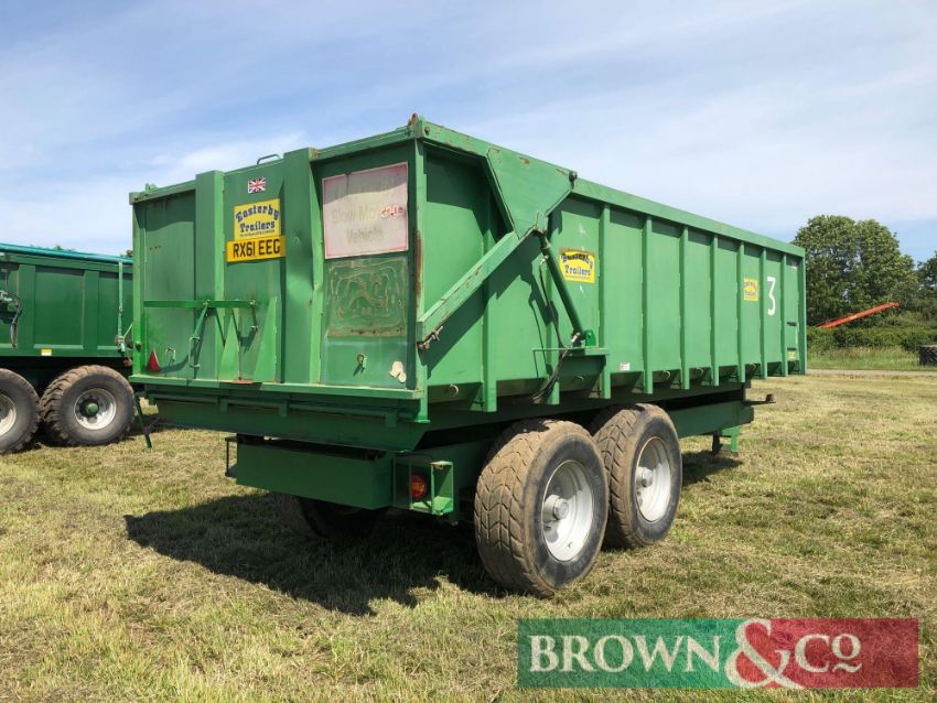 Easterbys Trailers ET14 14t grain trailer with sprung drawbar, hydraulic tailgate and grain chute on 385/65R22.5 super single wheels and tyres