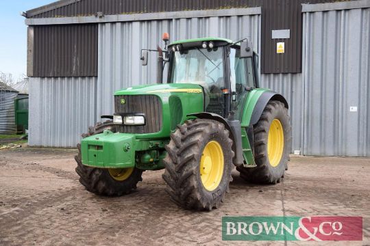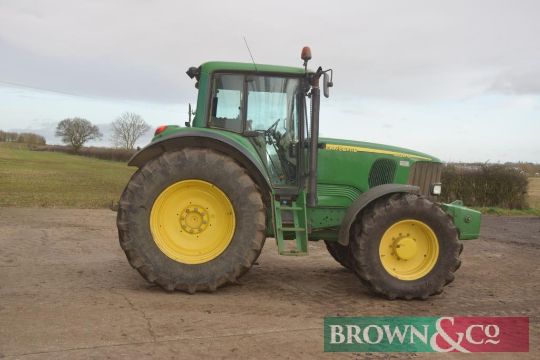2005 John Deere 6920S 4wd tractor 40Kph Auto Quad, TLS c/w 900kg front weight on 540/65R28 front and 650/65R38 rear wheels and tyres. Reg: KE05 HKZ. Hours: 6,014. Serial No: L06920K448736