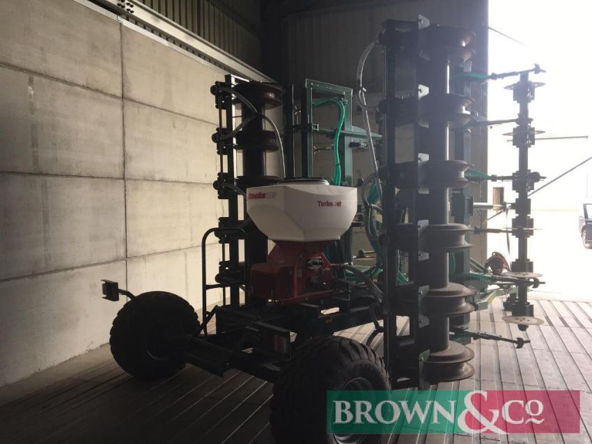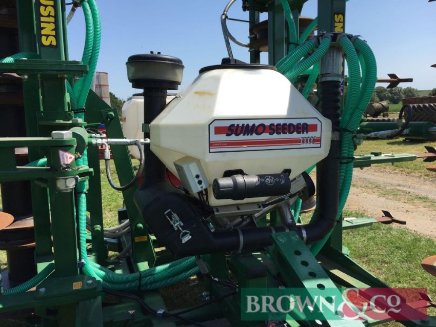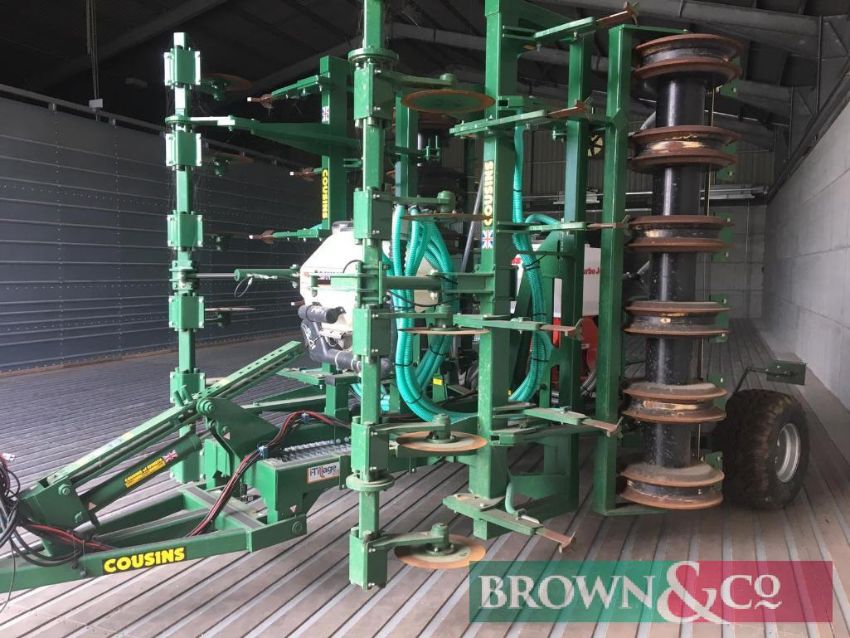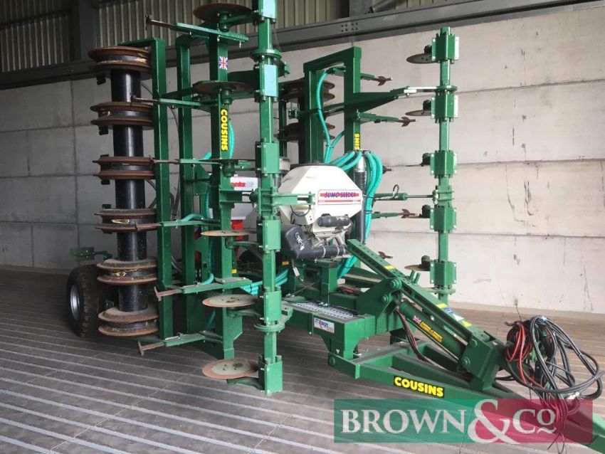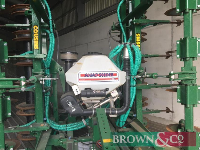 Cousins 6m Oilseed drill c/w Sumo Seeder (variable rate seed capacity) and Stocks Micro-granular applicator kit (to apply starter fertiliser or slug pellets) which works off Isobus plug.
