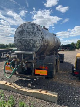 14,000 Litre water bowser with single axle. Operational with 600l/min petrol pump