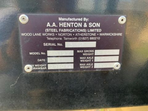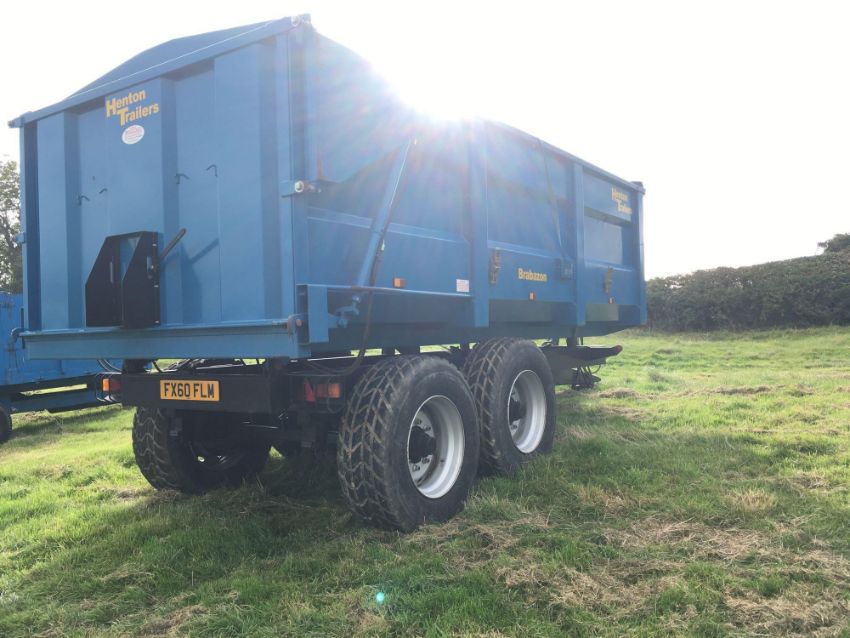 2013 AA Henton & Son HB12T 12t twin axle grain trailer, hydraulic tailgate and manual grain chute, on 385/65R22.5 wheels and tyres. C/w roll over sheet. On farm from new. Serial: 3112
