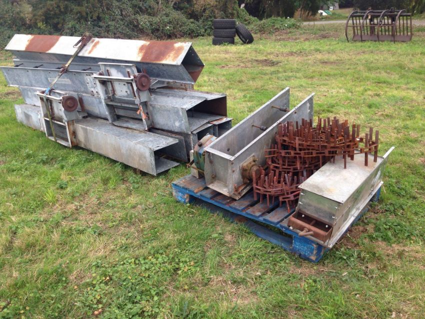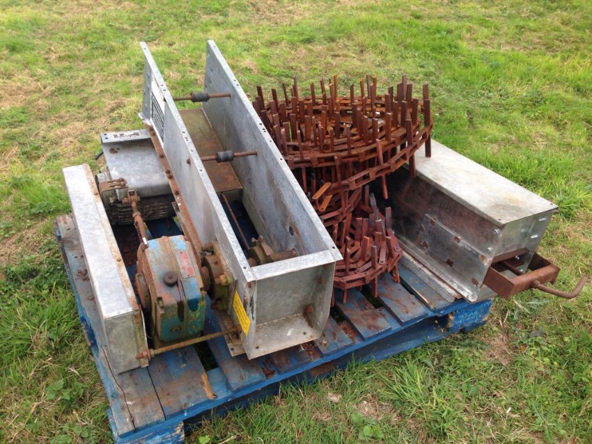 Rowlands 60t/hr galvanised chain & flight conveyor 25m long, 3 intermediate outlets