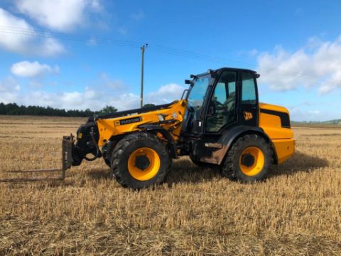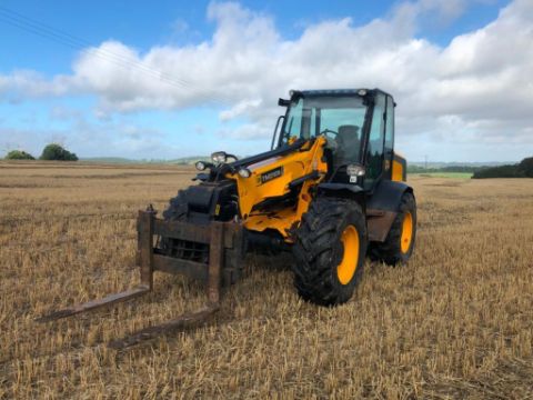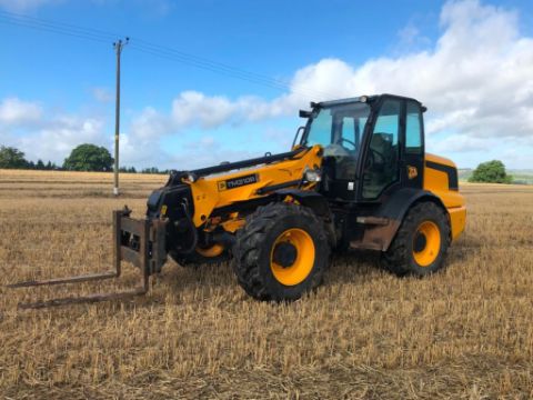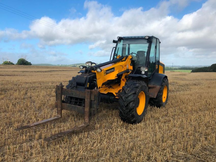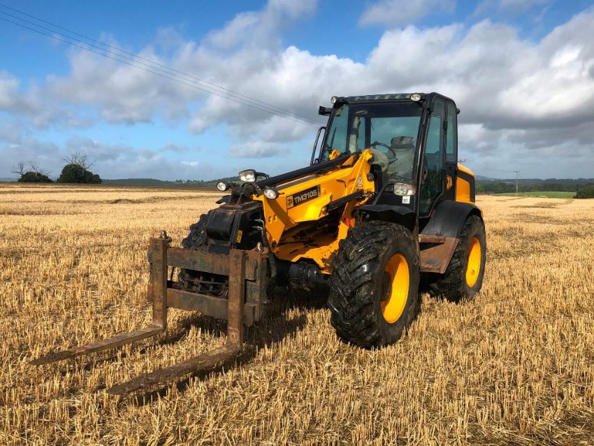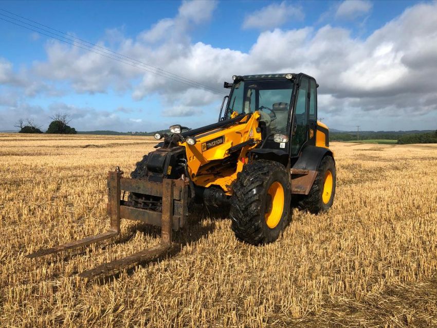 2010 JCB TM310S Agri pivot steer materials handler on 460/70R42 wheels and tyres with pallet tines, pin and cone headstock. Reg: DX10 MZF. Hours: 5,605. Serial No: JCB310RTP01315910