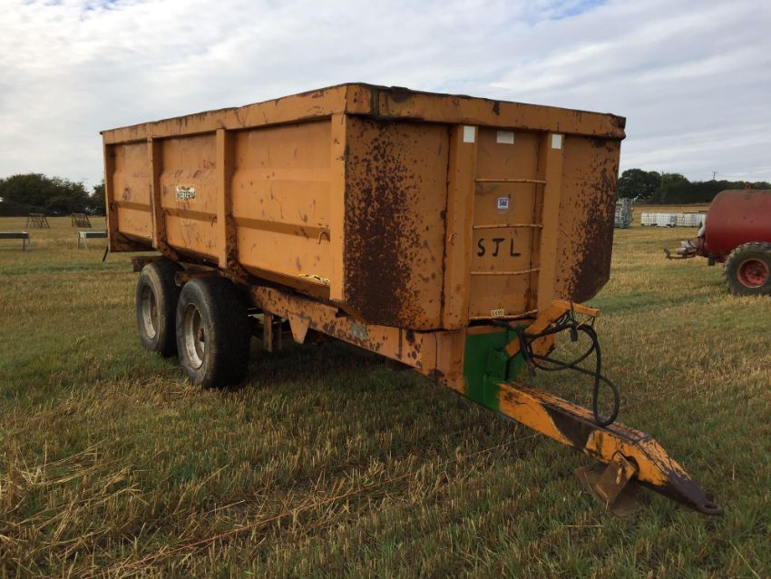 1995 Richard Western 10t twin axle grain trailer, hydraulic brakes, hydraulic tipping and tailgate with grain chute on 385/65R22.5 wheels and tyres