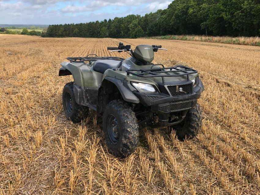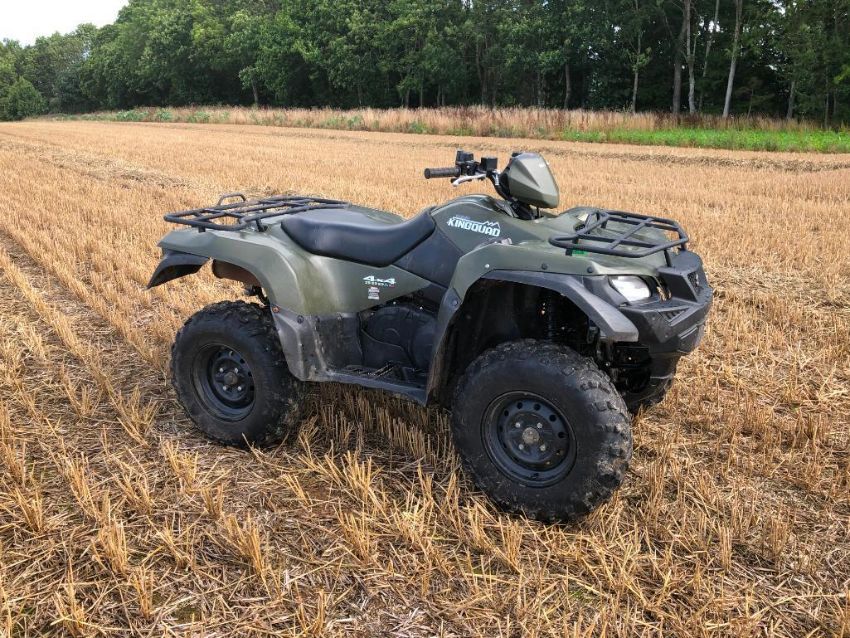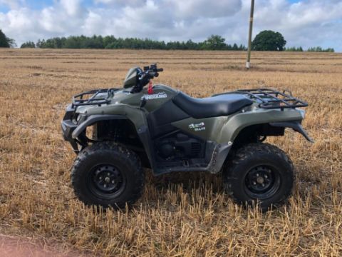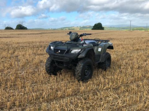 2018 Suzuki KingQuad 4x4 500 AXi, petrol on AR 25 X 8-12 wheels and tyres. Datatagged. Km: 6,022. Hours: 518