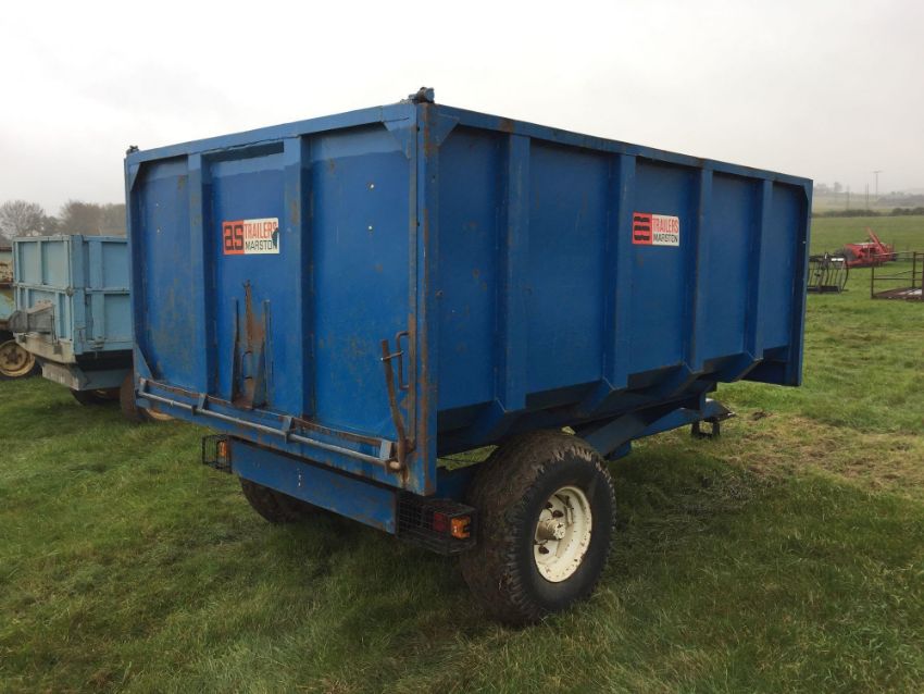 1979 AS Marston single axle 6.5t hydraulic tipping trailer with front ladder and manual tailgate on 12.5/80/15.3 wheels and tyres. Serial No: 4122