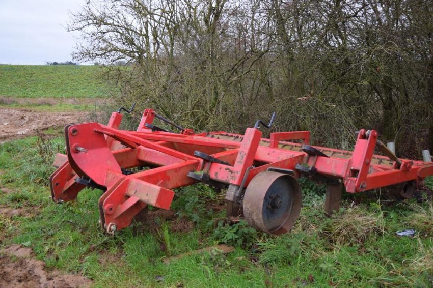 1995 Spaldings 5 leg flat lift with rear packer and depth wheels, linkage mounted
