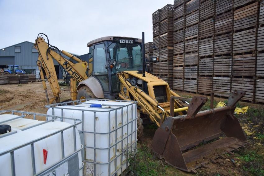 1999 New Holland NH95 back hoe loader on 18.4-26 rear and 12.5/80-18 front wheels and tyres with 3 in 1 front bucket and pallet tines. Reg No: T461 VWY. Hours: 2,465. Serial No: 031003554