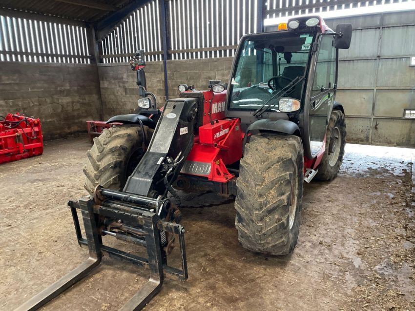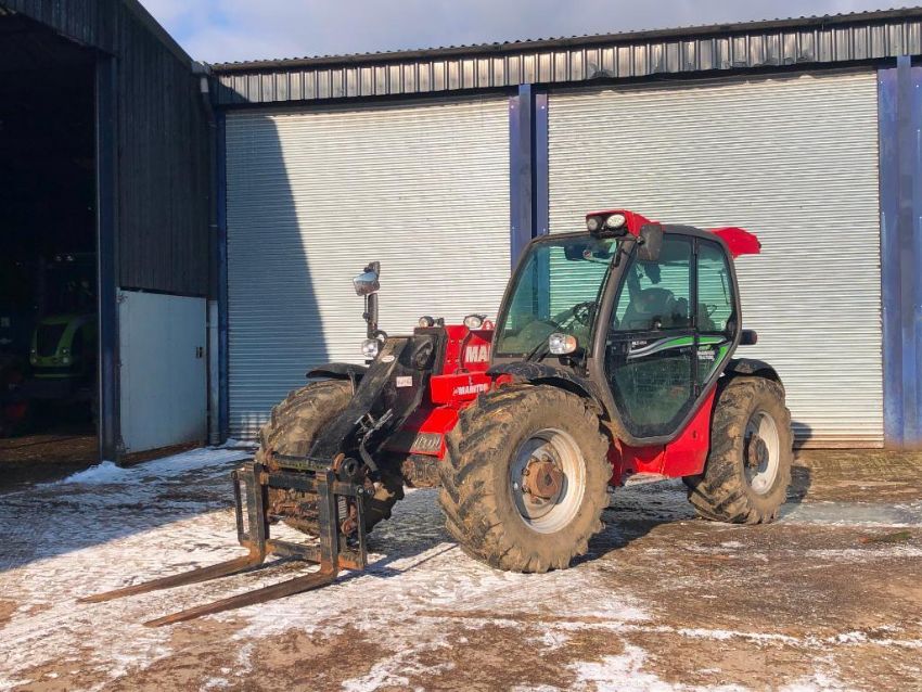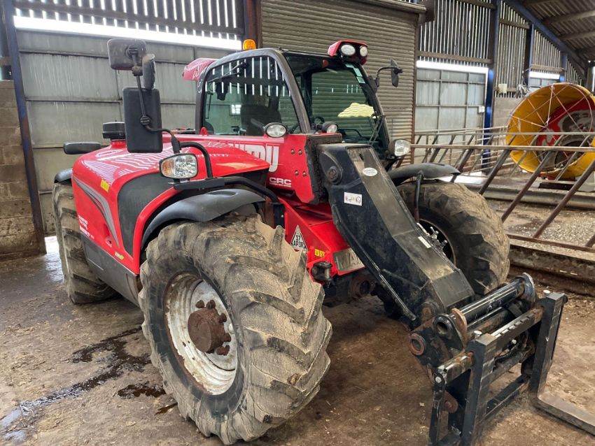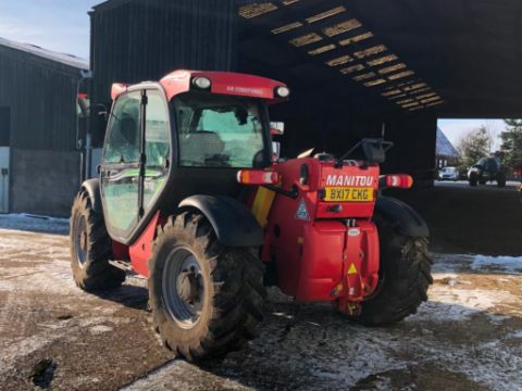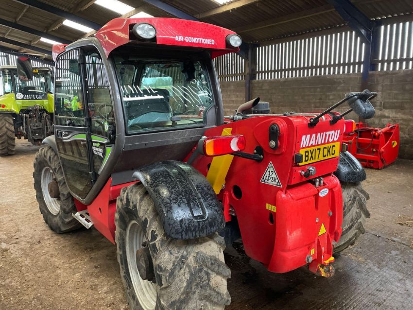 2017 Manitou MLT634 PS 120 materials handler with pallet tines on 460/70R24 wheels and tyres. Air-conditioned cab. Datatag Registered. Reg: BX17 CKG. Hours: 2,887. Serial No: 972079. NB Manual