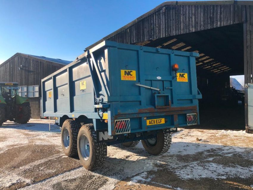 2011 NC 1845 - 12t twin axle grain trailer, sprung drawbar, hydraulic tailgate on 385/65R22.5 wheels and tyres c/w sheet. Serial No: 034582