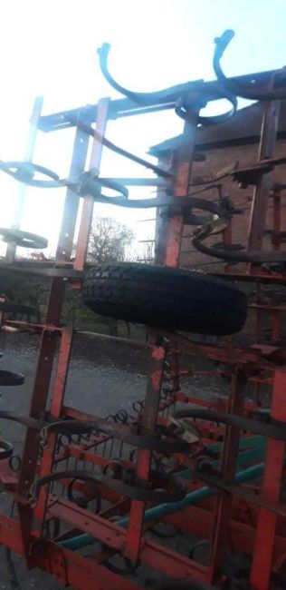 6m HYD Fold Cultivator, front leveling boards, rear following harrow, rubber depth wheels.