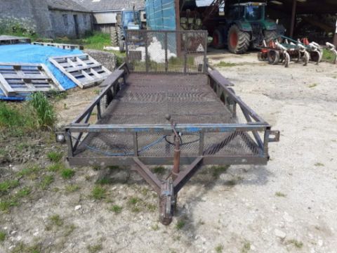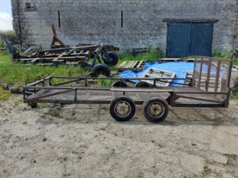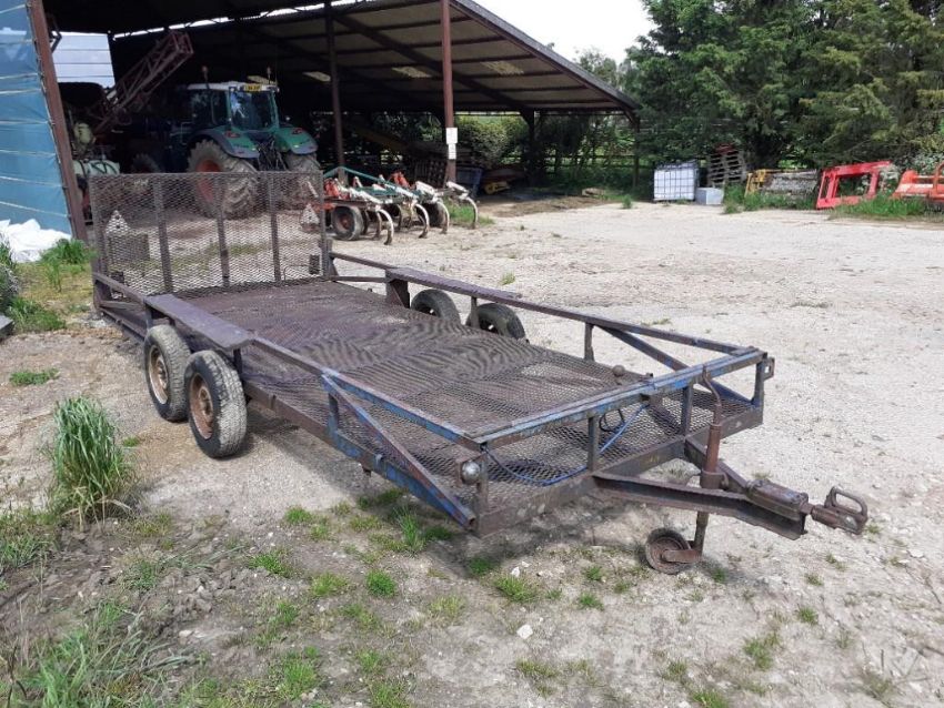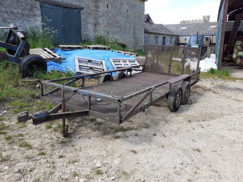 Home made Twin Axle Flat Bed Trailer with fold down tail ramp, metal mesh floor, electric lights and 155/60/R13 tyres.