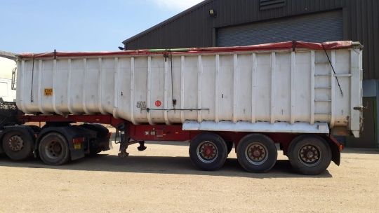 Crane Fruehauf Tipping Trailer. 57 cubic yards, drum brakes, air suspension with roll over sheet.
