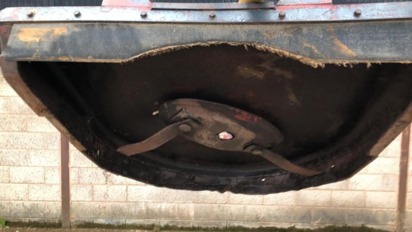 Bush Hog 1.2m single rotor blade mower, 3-point link mounted, PTO driven, missing rear wheel
