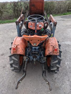 Kubota B6000 4WD diesel compact tractor fitted with front loader and bucket, rear linkage and PTO.