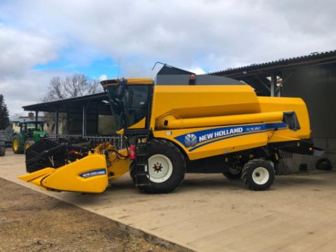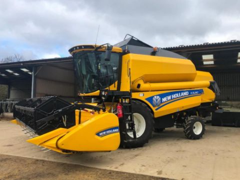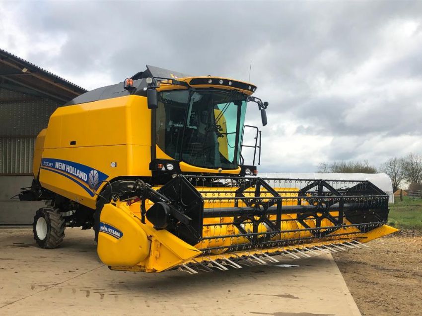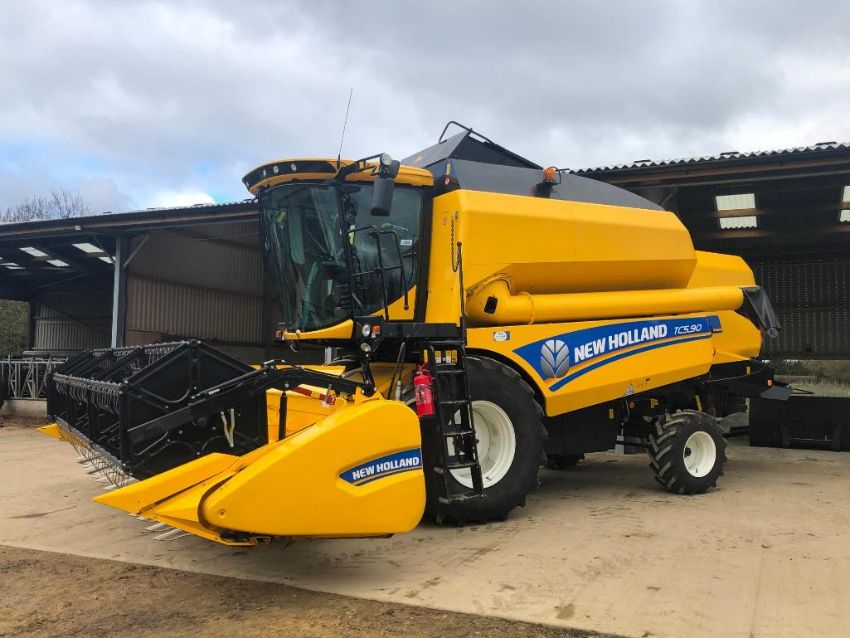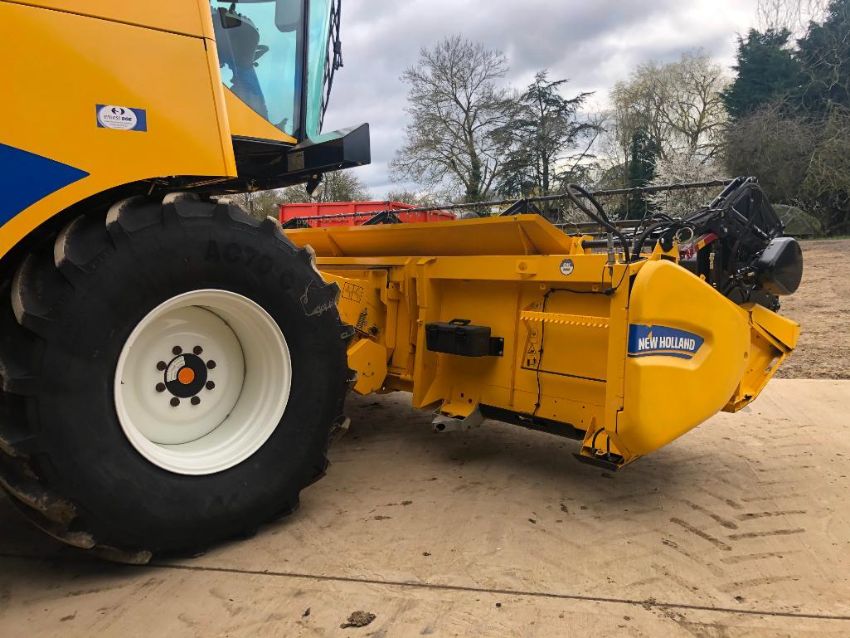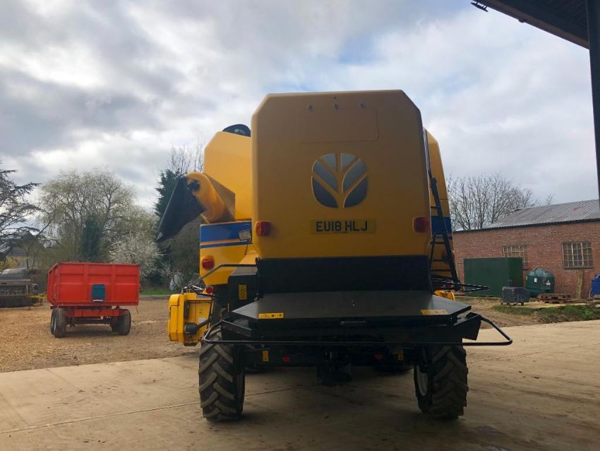 2018 New Holland TC5.90 combine harvester with straw chopper and Ceres 8000i grain monitoring system on 650/75R32 front and 400/70-20 rear wheels and tyres with 18ft Varifeed header and Shelbourne Reynolds C6000 header trolley. Reg No: EU18 HLJ. Engine Hours: 270. Drum Hours: 206. Serial No: 349858005.