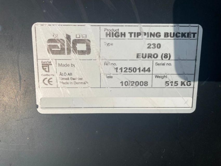 2008 ALO 230 high tip bucket on Euro brackets. Serial No: 11250144