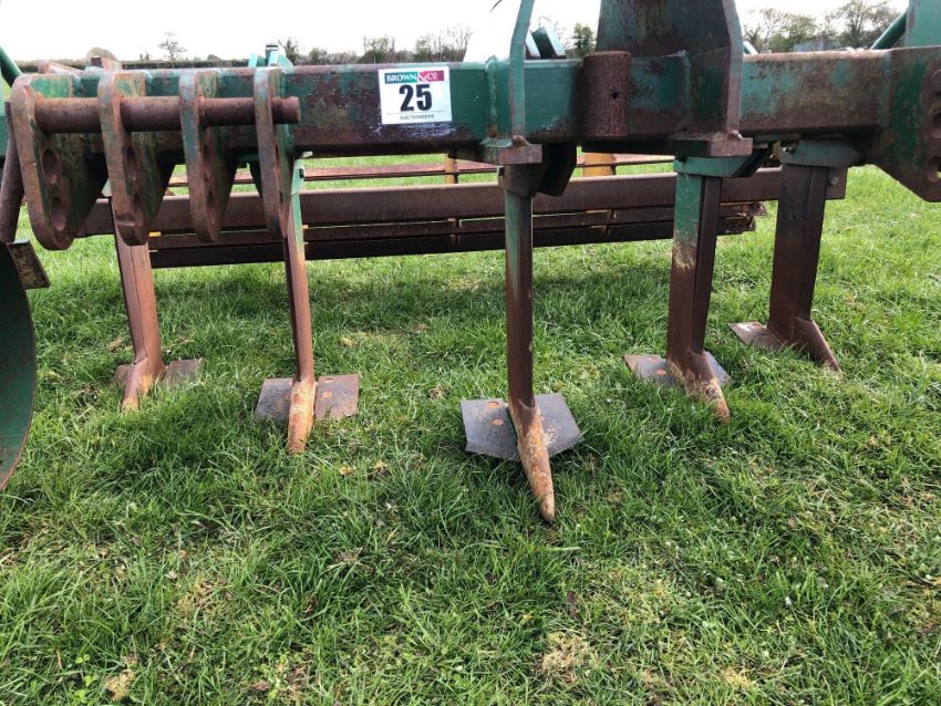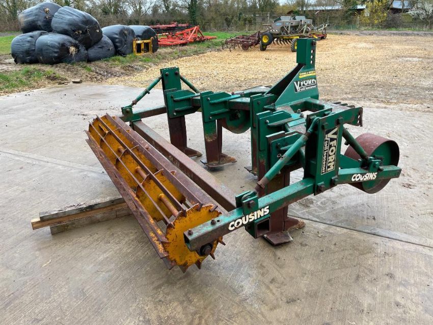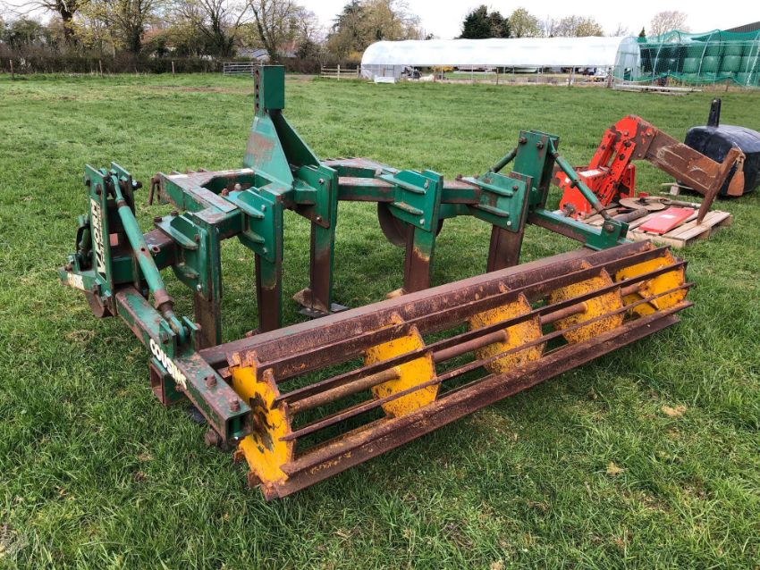 1993 Cousins V-form 5 leg subsoiler with rear crumbler and depth wheels. Serial No: VF22M3CB18
