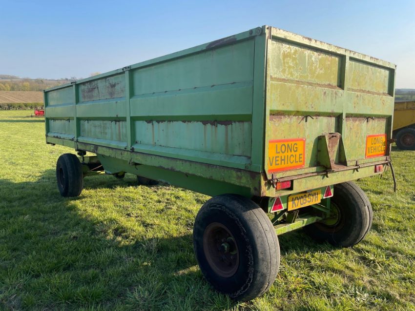 1979 Big K drop side single axle hydraulic tipping twin axle trailer with manual tailgate, grain chute and dolly. Serial No: 25244