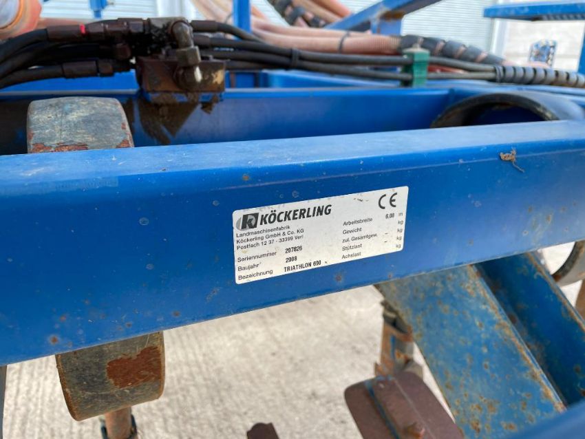 2008 Kockerling Triathlon 600 6m hydraulic folding tine drill with rear press rings. Serial No: 207826