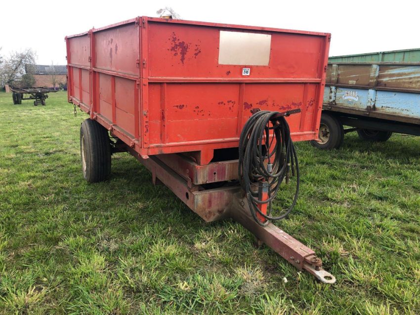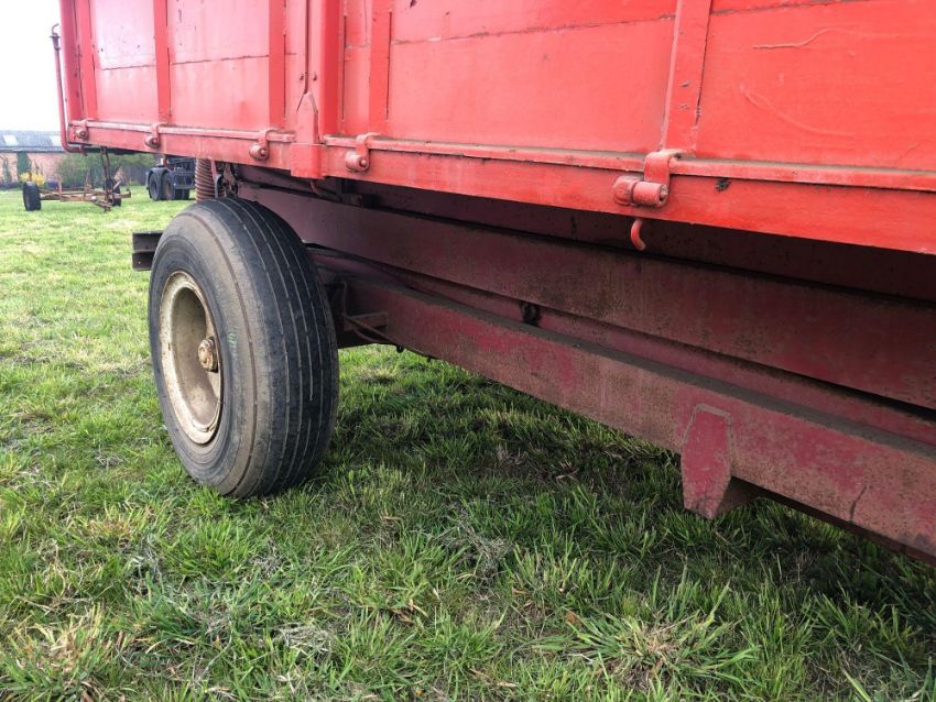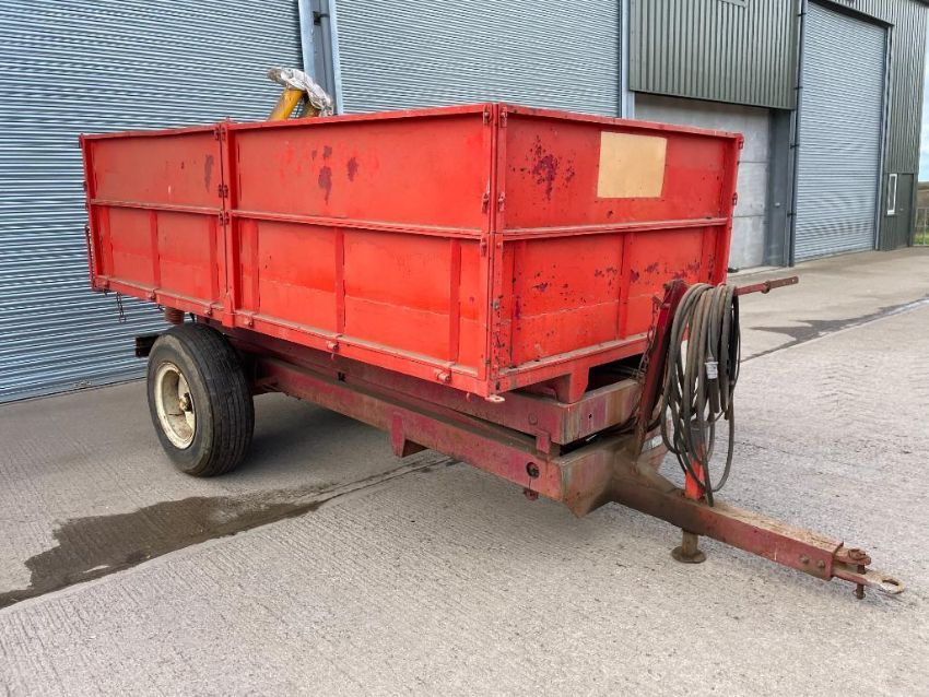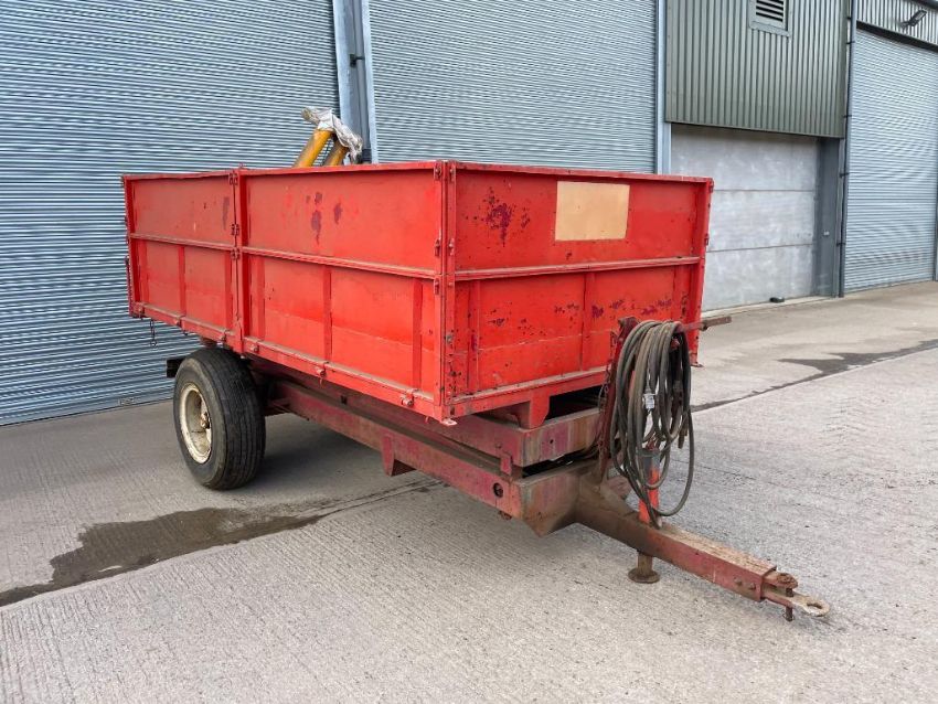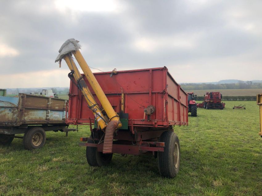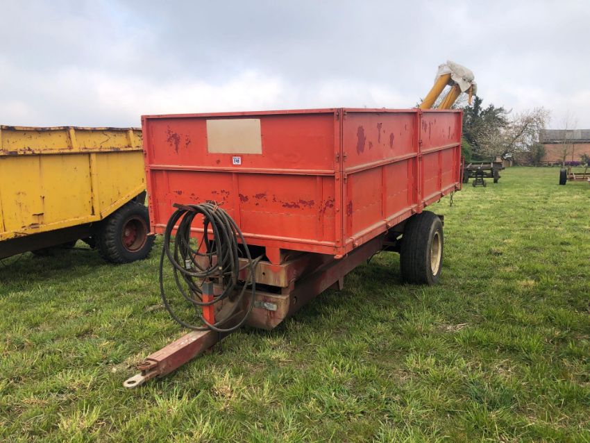 1978 Pettit 7t drop side high-tip single axle hydraulic tipping trailer with manual tailgate, grain chute and unloading auger. Serial No: 22804