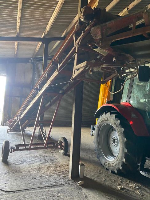 Rekord 33ft single phase elevator with swinging head, corn and potato chute. Location: North Lincolnshire.