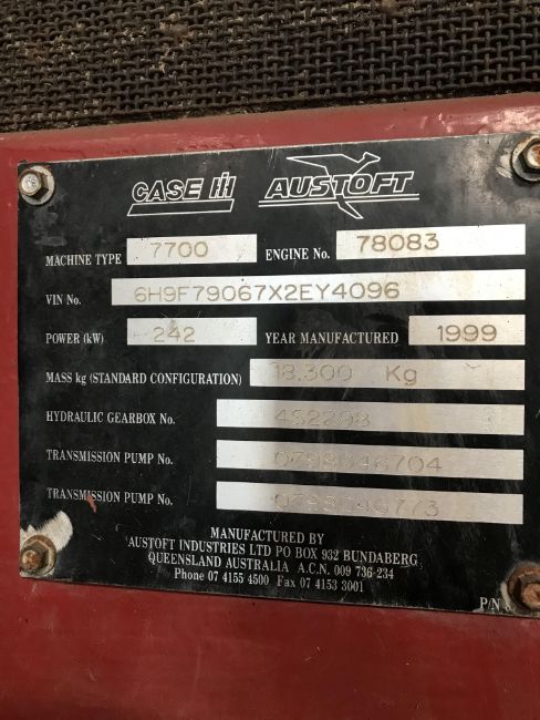 1999 CASE IH Austoft 7700 converted sugar cane harvester for SRC willow harvesting. C/w billet machine. Komatsu 325hp engine. Serial No: 6h9f79067xzey4096. Location: North Nottinghamshire