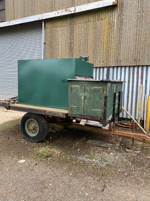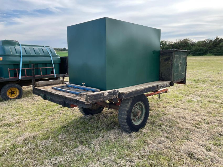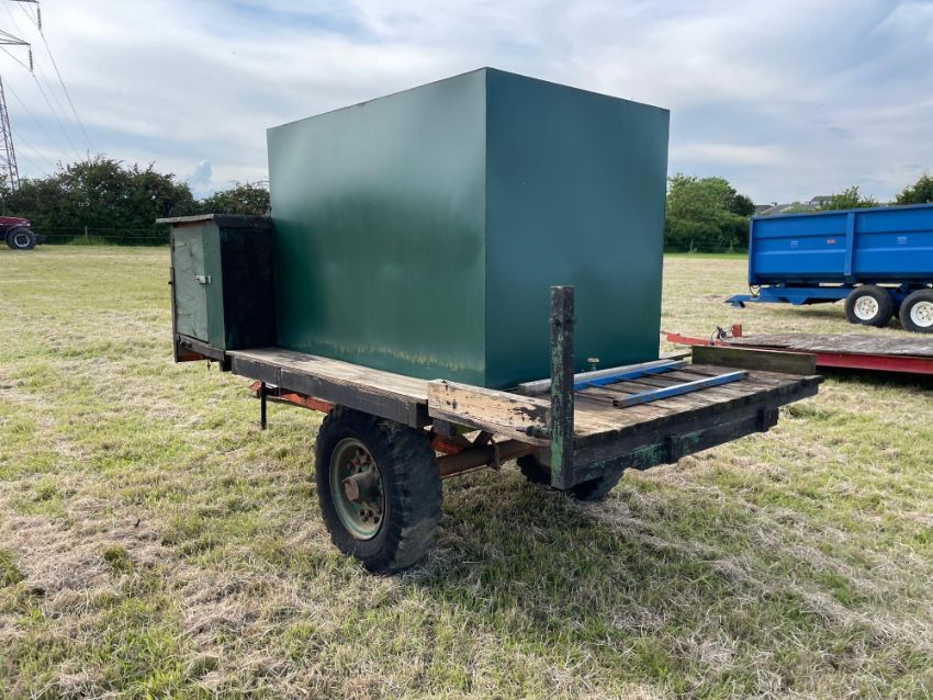 10 ft single axle trailer, metal floor with 800gal metal tank and 12v electric pump