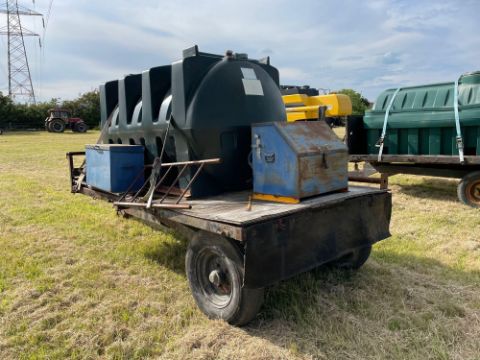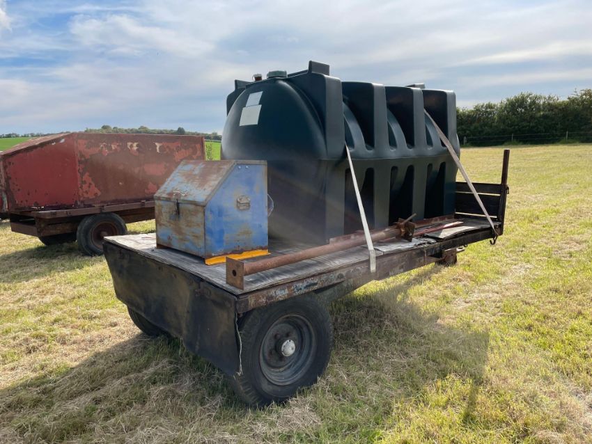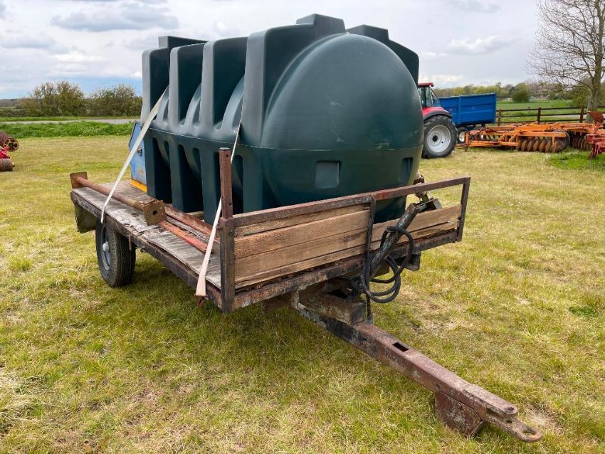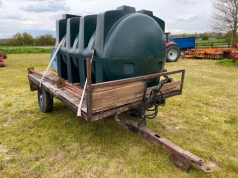 10 ft single axle trailer, wooden floor with 2500l plastic tank 12v electric pump