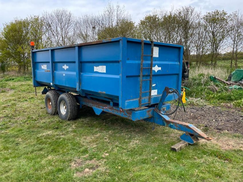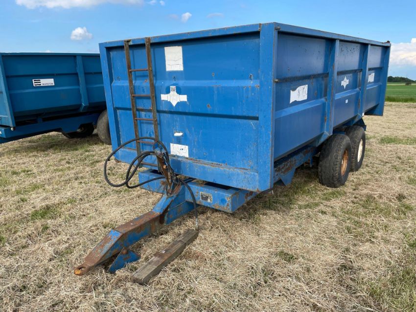 1984 AS Marston 10t twin axle grain trailer, manual tailgate and grain chute on 12./80-15.30 wheels and tyres. Serial No: 8501