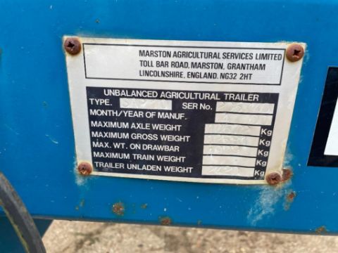 2000 AS Marston 10t twin axle grain trailer, manual tailgate and grain chute on 385/65R22.5 wheels and tyres. Serial No: 206740