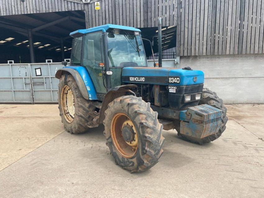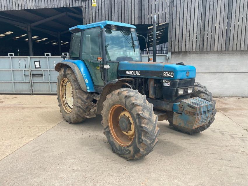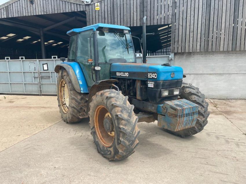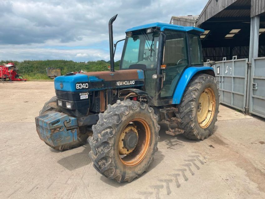 1997 New Holland 8340 4wd tractor with 2 manual spools on 14.9R28 front and 18.4R38 rear wheels and tyres with 12x40kg front wafer weights. Reg No: P142 EVO. Hours: 6,495. PLEASE NOTE: NO LOG BOOK. NEW LOG BOOK HAS BEEN APPLIED FOR AND WILL BE SENT AS SOON AS POSSIBLE