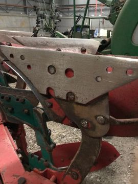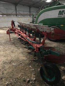 Kverneland LD85/300 reversible plough. 6 furrows (5 plus 1), No. 28 bodies, manual vari-width, 300hp headstock, rear depth/transport wheel, rear furrow wideners, new wearing metal 100 acres ago, knock on points.