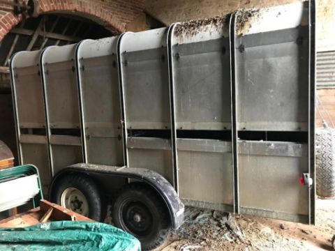 12ft livestock trailer, ventilation openings, spare tyre and jockey wheel.