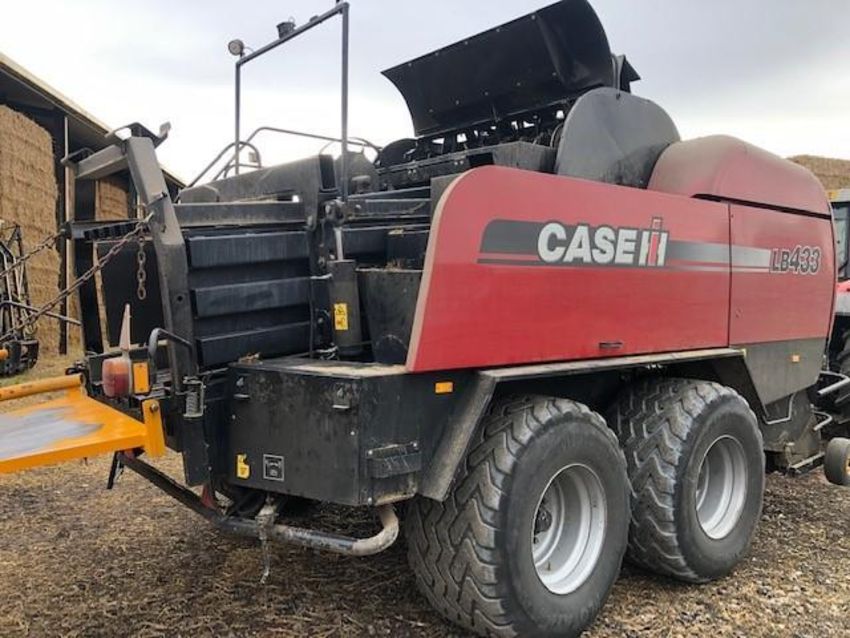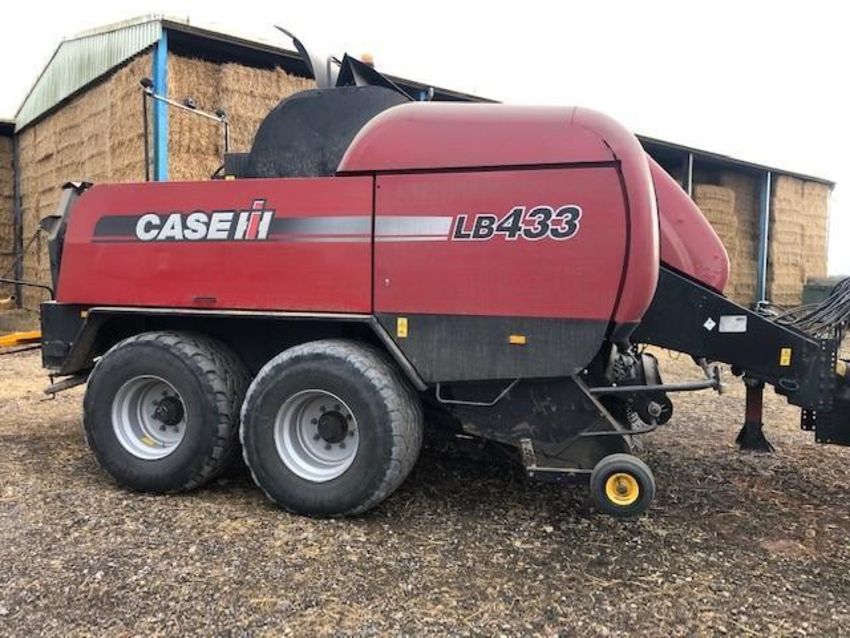 Case LB433 Baler, 4x3 bale size, 6 string, rota cutter, control box, hydraulic jack, crop press roller, auto greaser, auto chain lube, air brakes and twin steering axle.