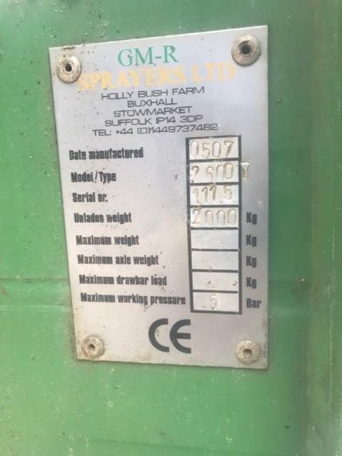 GMR GM2600 Sprayer, 24m booms. PTO driven.