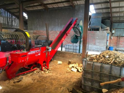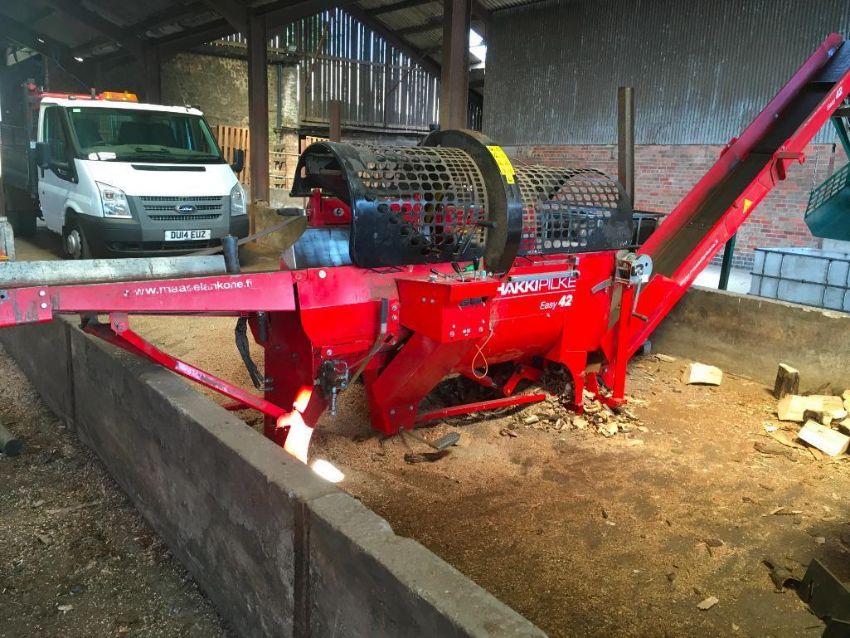2013 Hakki Pilke 61401 Easy 42 firewood processor. PTO driven and independent hydraulic drive. 2,4,6,8 & 12 way log splitters, 13t splitting force ram, taking up to a 16 inch in diameter log. 4m elevator. Joystick control. C/w Woodram 422 hydraulic wood deck. On farm from new. Serial No: 6126018.