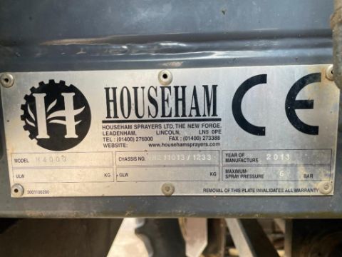2013 Househam Merlin M4-30 36m self-propelled sprayer 4000l tank with twin line auto-contour booms, front linkage, TMC field marker spray pack, Topcon X25 RTK GPS and steering unit on Michelin 380/85R34 wheels and tyres. Datatag Registered. Reg No: FL63 YKB. Hours: 5,039. Serial No: HM211013/1233. NB: Manual and fuel filling pump in office