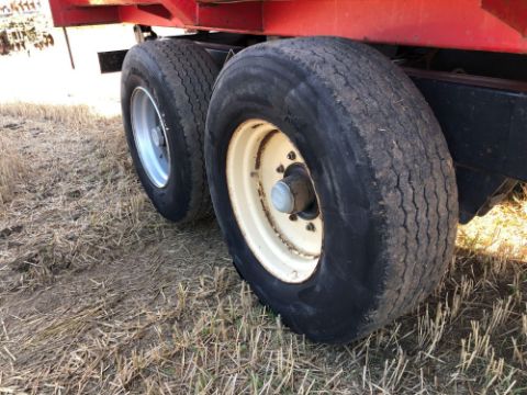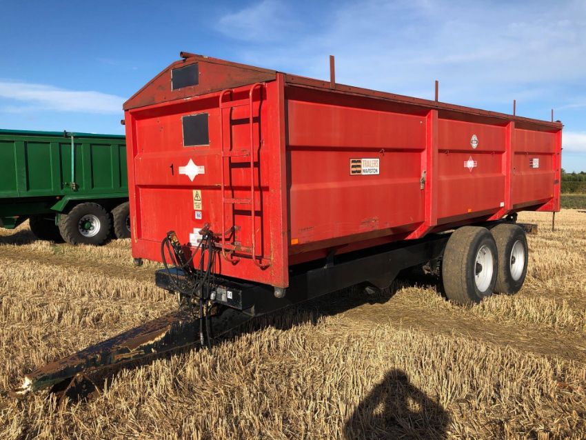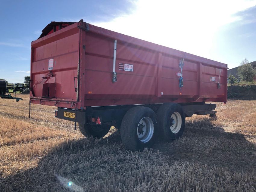 1995 AS Marston ACE FF14T twin axle grain trailer with sprung drawbar, manual tailgate and grain chute and easy sheet on 385/65R22.5 wheels and tyres. Serial No: 203663
