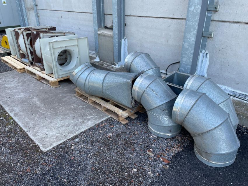 Pair centrifugal 4kw fan units with 16" pipes and spare housings
