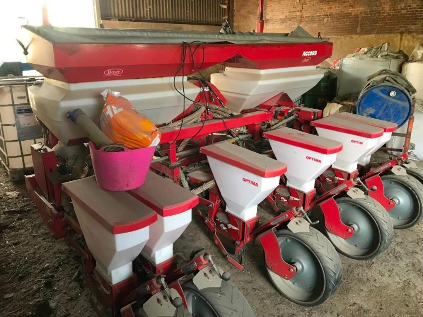 Accord Optima 6 Row Maize Drill, 2006, Telescopic Folding, Fert Application Hoppers, c/w Manual & Spares