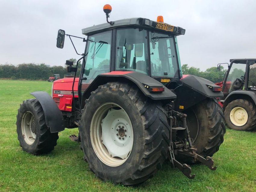 1998 Massey Ferguson 6170 Dynashift 4wd tractor with 3 manual spools on 480/65R28 front and 600/65R38 rear wheels and tyres. Reg No: S257 DBF. Hours: 7,492. Serial No: G247032